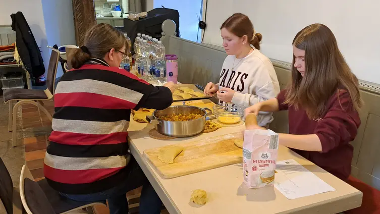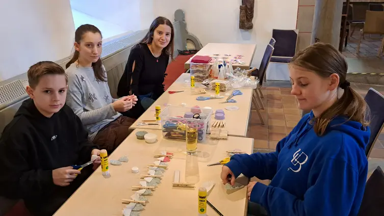 Mit einem Projekttag zum Weltgebetstag 2026 aus Nigeria bereiteten sich die Konifs auf den Gottesdienst am 21. Februar, um 16.00 Uhr in der Barbarakirche, vor. Nach einer kurzen Einführung zum Gastgeberland und der fast 100-jährigen Geschichte des Weltgebetstages, wurde gesungen und eine Geschichte, die auf das Motto des Tages hinführt, mit verteilten Rollen gelesen. „Kommt! Bringt eure Last!“ -zum diesjährigen Thema waren die Jugendlichen im Anschluss aufgefordert fünf Fragen, das eigene Leben betreffend, anonym zu beantworten. Nach einer kurzen Pause ging es dann in die Küche. Gemeinsam wurden drei nigerianische Kochrezepte ausprobiert und die Köstlichkeiten im Anschluss gemeinsam gegessen – es war alles sehr lecker. Zum Abschluss des Tages bastelten die Konfis noch für alle Gottesdienstbesucher kleine Give-Aways.