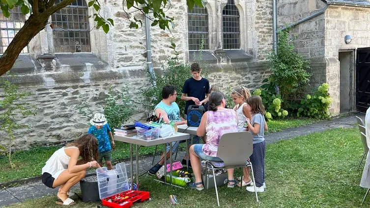 Die Kirche mal so richtig durchstöbern, in alle Schränke schauen, Glocken und Orgel aus der Nähe betrachten, jeden Winkel erkunden? Eine größere Schar Kinder und Konfis nahm die Gelegenheit am letzten Sonntag vor den Sommerferien wahr und stürzte sich mit Klemmbrett und Stift in das Abendteuer Kirchenrallye. Zahlreiche Rätsel waren zu lösen und knifflige Fragen zu den einzelnen Stationen zu beantworten. In kleinen Gruppen zogen die Kinder los und schon bald war die Kirche voll von Geflüster, Gelächter und eiligen Schritten. Das Kindergottesdienstteam hatte sich für alle Räume, Bereiche des Kirchenraums und besondere „Gegenstände“ Aufgaben einfallen lassen, die für manchen eine echte Herausforderung darstellten. So wurden z. B. die Feuerlöscher gezählt, die Temperatur in der Orgel gemessen, in der Sakristei eine „Geschmacksprobe“ gefordert und die Tiere, die auf dem Glockenturm wohnen, gesucht. Nach zwei Stunden waren alle Fragen beantwortet und das abschließende Grillen auf der Wiese neben der Kirche konnte beginnen. Auch die Eltern, die zum Abschluss der Rallye eingeladen waren, trafen ein und ließen es sich schmecken. Bei der Preisverleihung zeigte sich dann, dass es nicht auf das Alter ankam, sondern darauf, wie man sich auskannte und wie genau man hingeschaut hatte. Jedes Kind erhielt einen Preis, die drei Besten einen Gutschein für die Eisdiele.