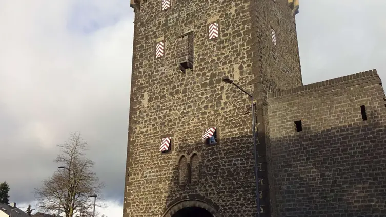 Wichhäuschen und Schartenläden am Obertor in Mayen