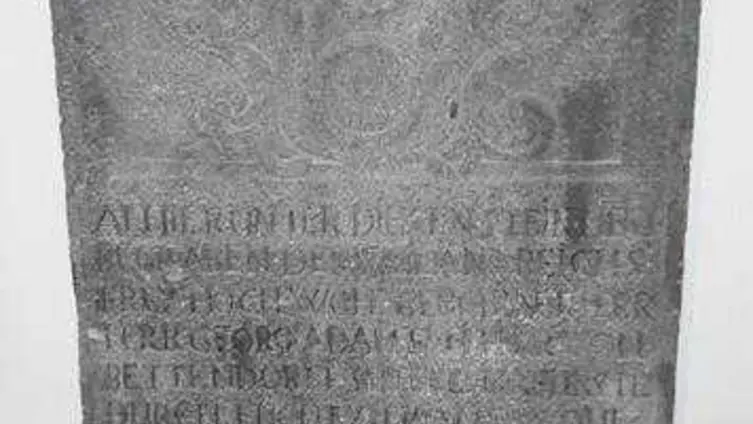 Ein weiterer Grabstein stammt von Reichs-Frey-Wohlgeborener Herr Georg Adam, Freyherr von Bettendorf, geb. 09.11.1666 in Heidelberg, gest. 31.03.1694. (Abb. 179) Er war kurpfälzischer Kammerherr und Generaladjutant Leutnant als er in Koblenz bei Major Hugo Eberhard von Botzheim starb. Bis 1875 befand sich der Grabstein unter den Frauenstühlen, neben dem der von Rinberg. Der Stein trägt das Wappen der von Bettendorf (ein Ring im Schild).
