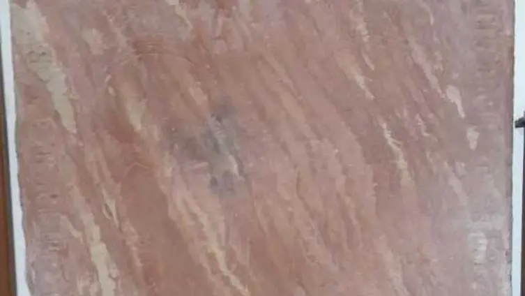 Der Rand der Grabplatte trägt rundum eine Inschrift in gotischen Buchstaben. Übersetzt: „Im Jahre des Herrn 1396 am 20. Februar starb Herr Diderich von Rinberg, der Ritter, im Jahre des Herrn 1390, am 15. Mai starb Frau Utilia, seine Gattin. Sie sind hier begraben worden. Mögen Ihre Seelen in Frieden ruhen. Amen.“