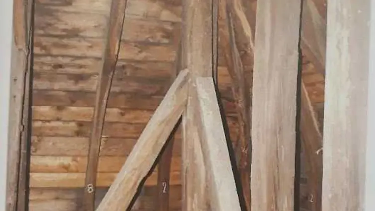 Die Rüsthölzer (Buchenholzstangen) wurden mit einem Höhenabstand von 1,50 m und ca. 0,8-1 m herausragend, in die Mauer mit eingemauert. Später legte man Bohlen darauf und hatte so eine Art Gerüst. Nach dem Bau wurden die Stangen einfach wandbündig abgesägt und das Holz verfaulte mit der Zeit durch die Witterungseinflüsse in den Löchern, sodass in 90% aller Bauten nur noch die Rüstlöcher zu sehen sind. Von den Rüsthölzern der Barbarakirche sind heute noch etliche in sehr gutem Zustand erhalten, sodass problemlos Bohrkerne entnommen werden konnten. (Abb.87)