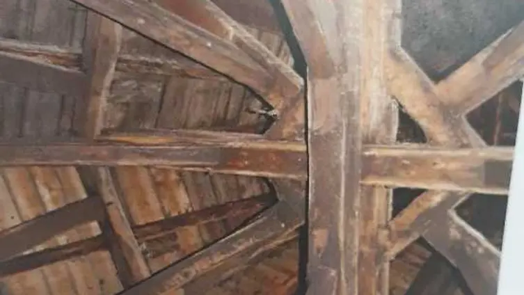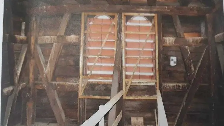 Bei der letzten Renovierung 2017-21 wurden umfangreiche Zimmerarbeiten vorgenommen, da durch Regeneintritt teilweise Substanzschädigungen vorlagen. Da sowohl das achteckige Turmdach, als auch das viereckige Geschoss nur lose auf den abgeschnittenen Sparren aufsaßen, hätten diese bei einem starken Sturm oder auch Erdbeben, runterfallen können. Dieser Gefahr war man sich bis zur Renovierung nicht bewusst, da man davon ausging, dass die Elemente korrekt verbunden wurden. Die Stützen wurden unterkeilt, fehlende Verbindungen hergestellt, Zuganker montiert, lose Verbindungen mit Zapfen und Schrauben gesichert, Fehlstellen repariert oder ergänzt, und Holzschutz aufgebracht. Danach brachte man eine neue Dachschalung und neue Naturschiefer auf. (Abb. 127)