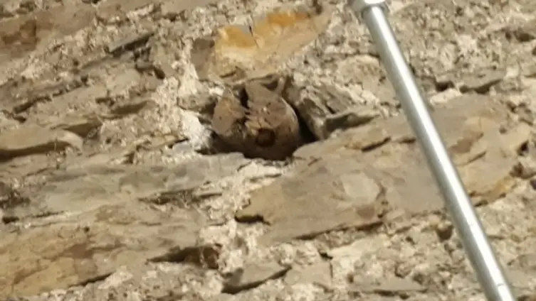 Bei der letzten Außenrenovierung 2019/21 wurden alle losen Mörtelreste und Steine entfernt und ersetzt. Im Anschluss daran folgte ein mehrlagiger Spezialputz in mittelalterlicher weißer Farbgestaltung. Hierbei wurden die Rüstlöcher ausgespart, da sie, wie schon in den letzten Jahrzehnten, als Nistplätze für die sehr große Mauerseglerpopulation dienen sollen. (Abb. 93)
