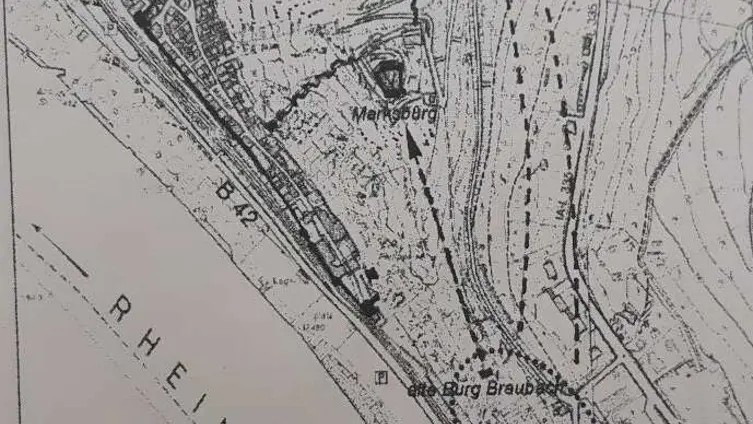 Die historische Barbarakirche in Braubach Im 6. Jahrhundert brachte der aquitanische Mönch Goar den christlichen Glauben ins Mittelrheintal. 691 wird Braubach erstmals urkundlich durch die Schenkung eines Weingartens mit einem Höfchen, erwähnt. Bis in jene Zeit reichen ohne Zweifel auch schon die Anfänge der Martinskirche, der ursprünglichen Pfarrkirche in einem Bergsattel oberhalb der Stadt, zurück. Um 1000 wird diese in einem Verzeichnis der Kirchen des Stifts St. Kastor als Kirche in Braubach genannt. Braubach besteht zu dieser Zeit aus zwei Siedlungen. Die erste befand sich im Bereich des Rheinbergs (Kerkertser Straße = Kirchgasse) und bestand unter anderem aus einer eigenen Kapelle mit Friedhof und später der Burg Rhinberg. Sie wurde 1461/62 zerstört. Heute sieht man von der Siedlung nichts mehr. Die zweite Siedlung befand sich auf dem Bergsattel der Martinskirche. Hier stand auch die „Alte Burg“. Von dieser Siedlung ist nur noch die Martinskapelle vorhanden. Aus strategischen Gründen wurde zu Beginn des 13 Jahrhunderts die „Alte Burg“ aufgegeben und auf dem benachbarten Berg die heutige Marksburg erbaut. Zu diesem Zeitpunkt wurde auch diese Siedlung aufgelöst und am Großbach am Fuße des Burgberges im Tal, neu angesiedelt. Dieser Teil heißt später Oberstadt. In der späteren Unterstadt, am Schwemmland am Rheinufer, befand sich vor der Stadtrechtverleihung 1276 nur ein Salhof (auch Fron- oder Gutshof) und eine Fischersiedlung. (Abb. 1+2)